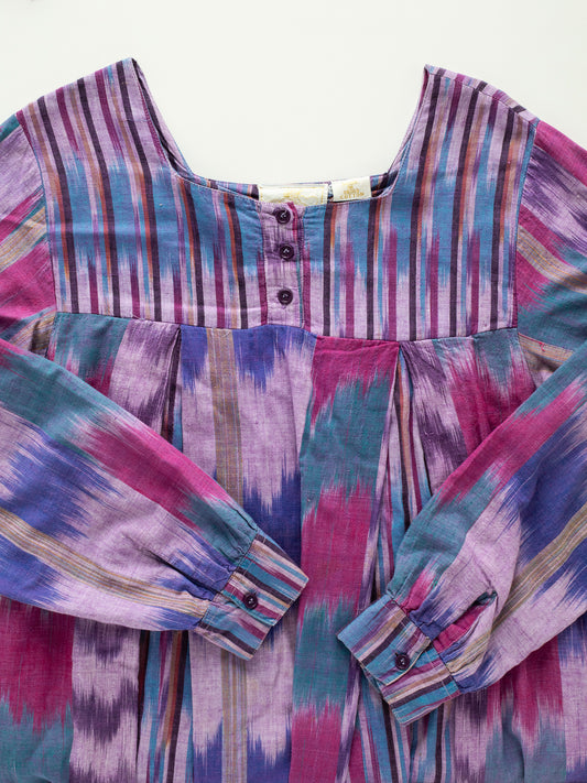 Vintage Purple Ikat Cotton Caftan Midi Trapeze Dress