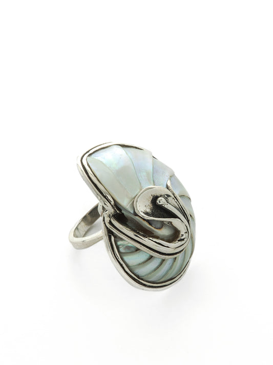 Mother of Pearl Rainbow Nautilus Shell Calla Lily Ring