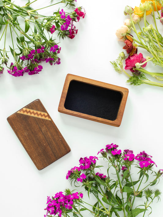 Vintage MCM Wood Marquetry Stash Box - Zigzag Pattern