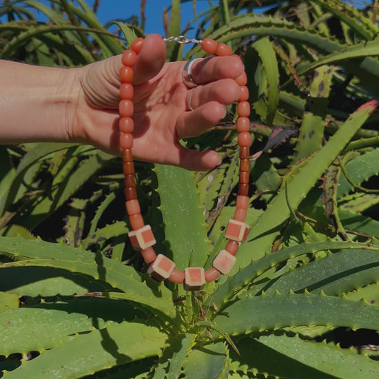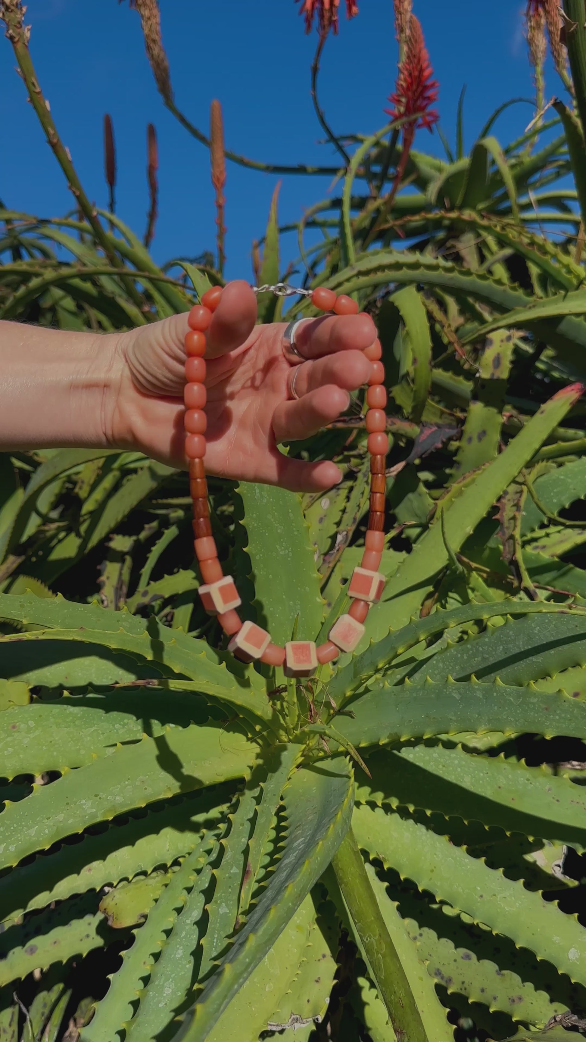 Reminiscent of the vibrant orange Sicilian marigolds that grow on the island of Gozo, the power of nature & Ancient history is part of this geometric statement choker that includes Buri Seeds & Natural Wood in a deep honey color. Quite the organic piece, designed to activate alignment with the natural world. The natural world balances & opens the Third Eye Chakra, which is connected to intuition & spiritual insight.